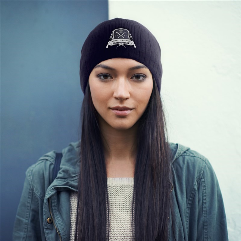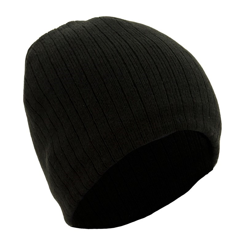 Cable Knit Beanie With Fleece Lining - Black |