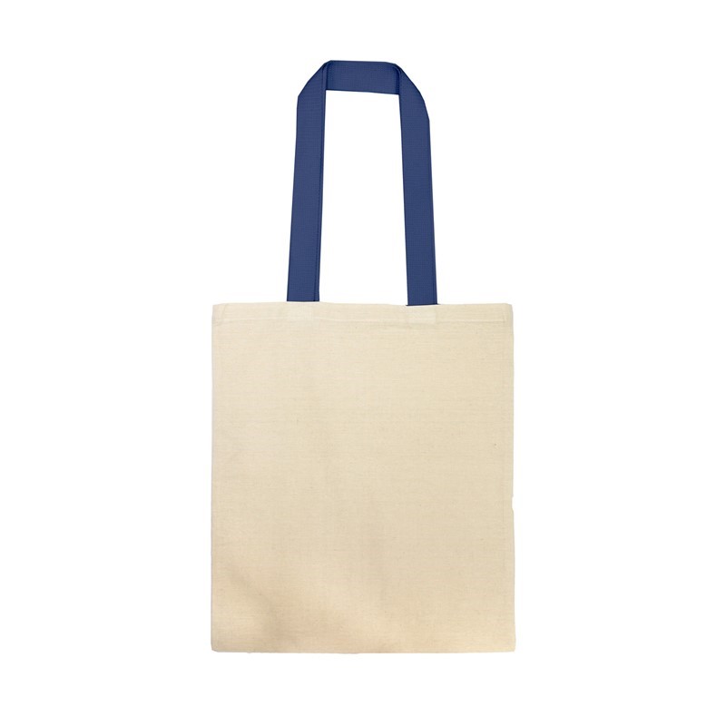 Cotton Tote Bag With Webbing Handle - Natural/Navy Blue |