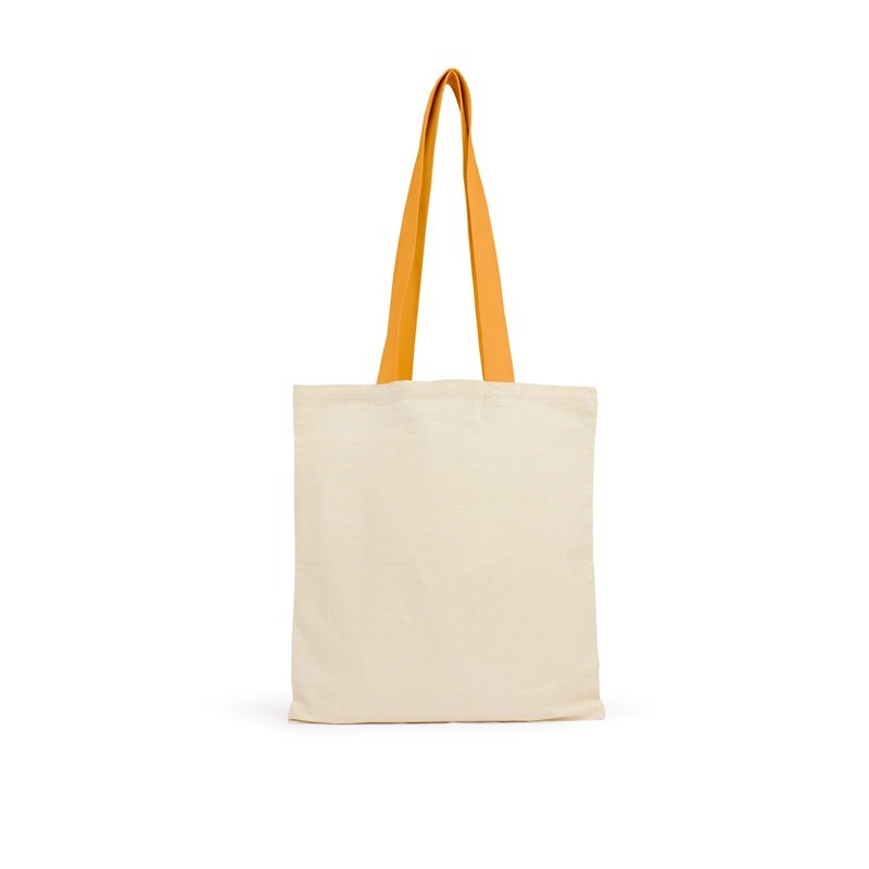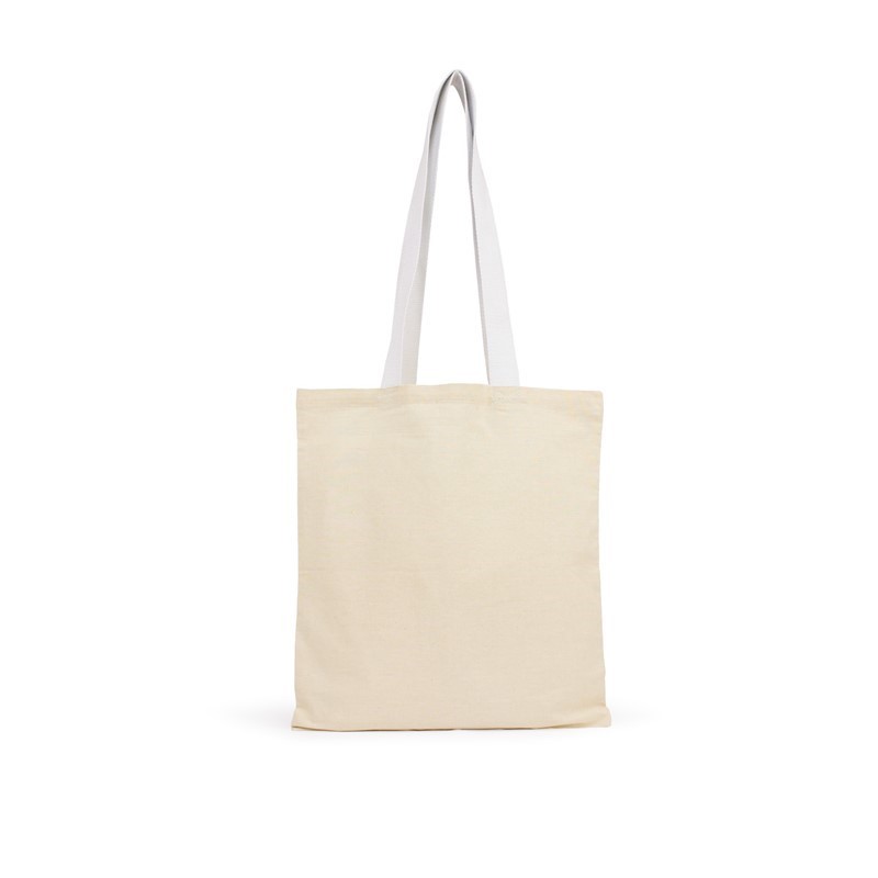 The Cotton Tote Bag with Coloured Webbing Handle is a stylish and eco-friendly bag made from 100% cotton with a 140gsm weight. This bag features coloured webbing handles that add a pop of color and extra durability.