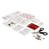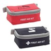 This First Aid Kits kit has been developed in co-operation with several European humanitarian organisations and contains all the initial products you could need in the event of a minor injury. All packaged in a smooth coated fabric bag with zip opener and belt clip. Contents: 1 x PVC bag, 12.5x8x5.5cm; 1 x triangular bandage, 1 x elastic bandage, 1 x adhesive tape roll, 4 x safety pins, 1 x scissors, 1 x mouth-to-mouth mask, 1 x large band aid, 1 x saline wipe, 1 x soap wipe, 1 x non-woven swab, 5 x band aid Strips, 1 x safety gloves, 1 x First Aid Kits notes.