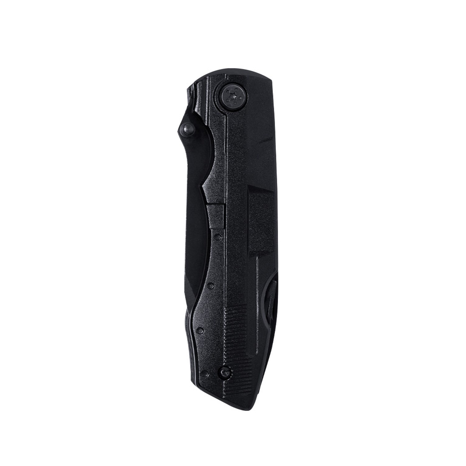 Compact and durable multi-purpose folding tool made from stainless steel with a sleek black finish and matching aluminium handle. Designed for everyday practicality, it features a compact folding design for easy storage and portability.