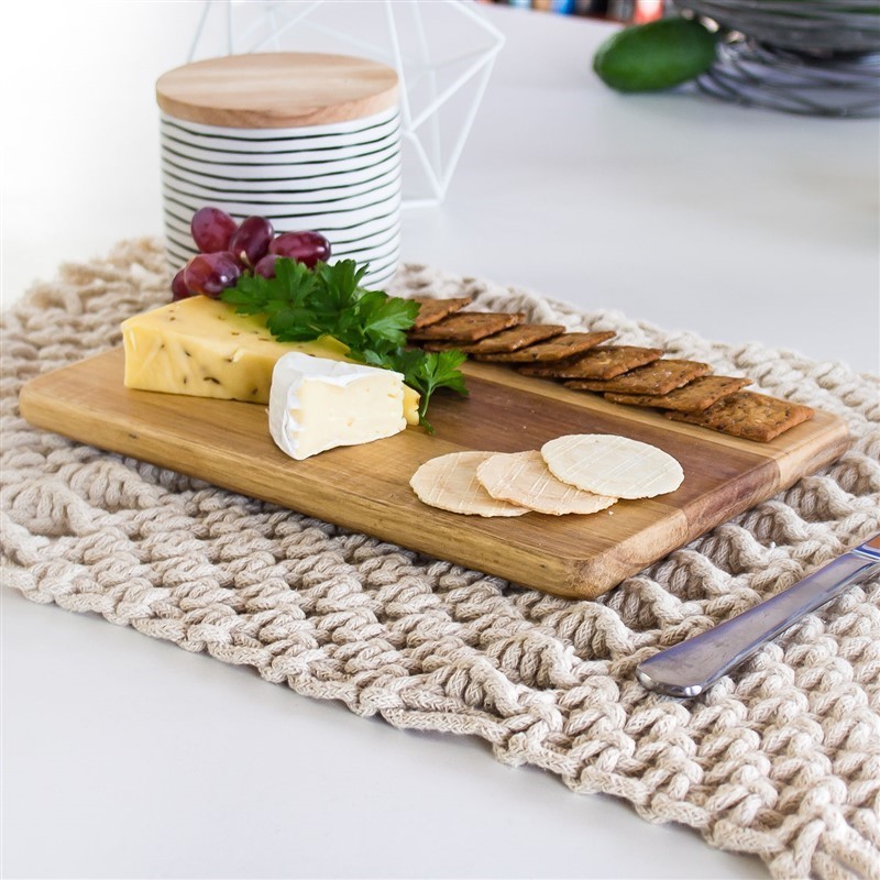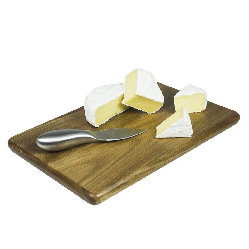 The Petite Rectangular Cheese Board is crafted from natural grain acacia hardwood with an FDA food-grade oil finish, giving it a beautiful and organic look. Measuring 250 x 170mm, it's the perfect size for serving a selection of cheeses or other small appetizers. The board comes in a sleek matte black gift box with a white sleeve, making it a great gift for any occasion.