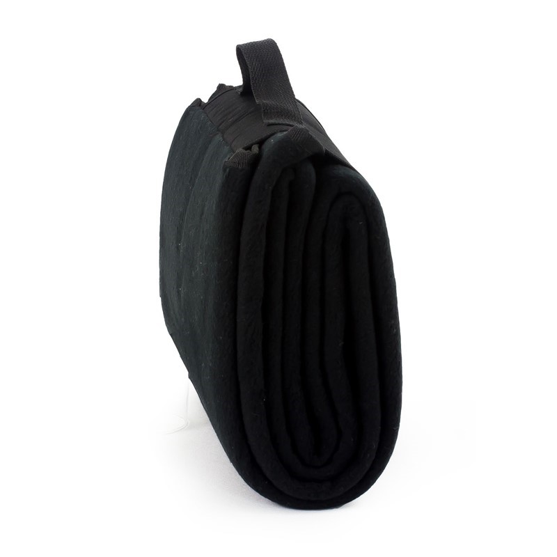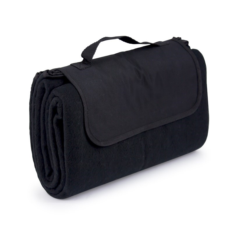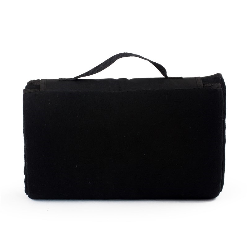 Enjoy a cozy outdoor picnic with this black fleece picnic blanket. The blanket is made of soft polyester fleece with a durable PVC backing to keep you dry and comfortable even on damp grass or sand. It comes with a convenient carry handle and nylon front for easy transport and storage.
