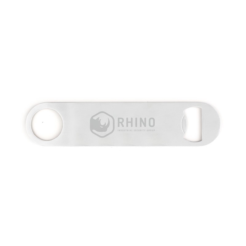 Speed Bottle Opener. Stainless steel flat speed bottle opener, the perfect tool for bar staff or company function events. Simple, functional and sophisticated design at its best. This sleek opener is available in silver and features a spacious print area of 70 x 30mm that can be customized using either pad or engrave printing methods. Upgrade your bar service with this premium speed bottle opener.