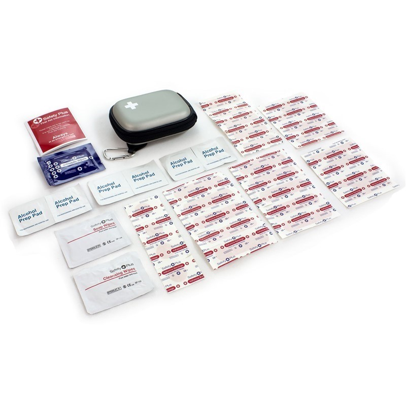 The traveller First Aid Kits kit is ideal to take with you on the go. Comes with a handy carabiner so you can clip onto your backpack or bag. An ideal kit for small injuries it containers the most frequently used plaster materials for travel, home or recreation. Packed in a handy EVA case. Contents include: 1 x Soap wipe, 1 x Cleaning wipe, 6 x alcohol tissue, 1 x antiseptic wipe, 10 x adhesive plasters, 5 x small adhesive plasters, 4 x knuckle plasters, 4 x round plasters, 1 x First Aid Kits notes, 1 x EVA case, 1 x carabiner.