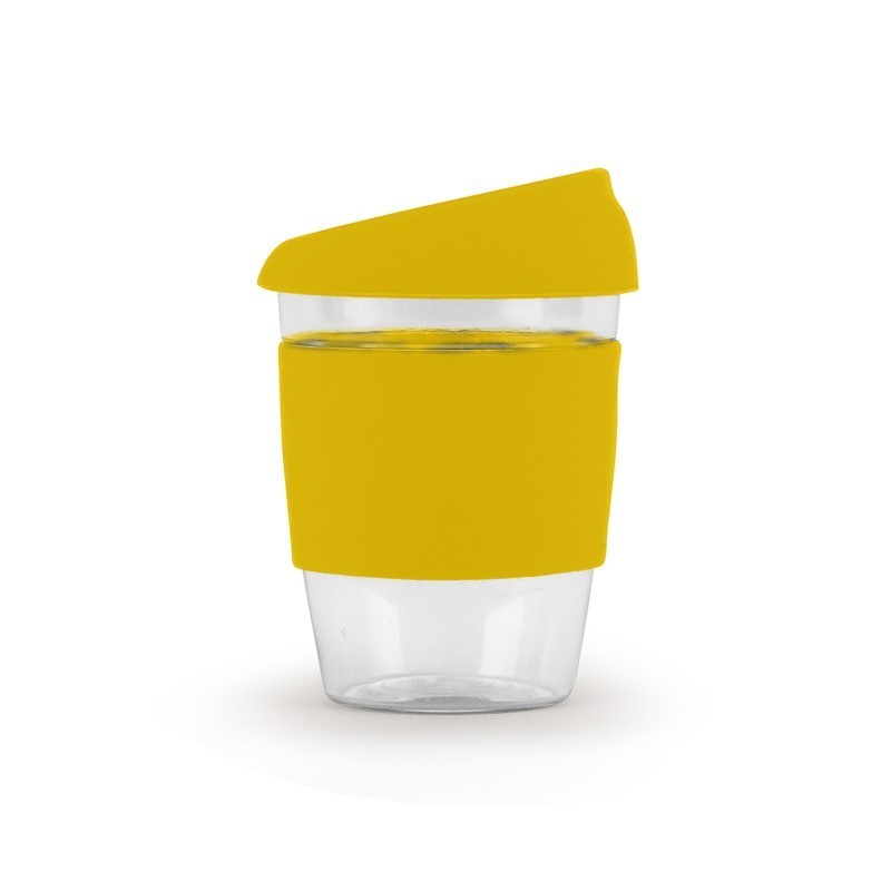 This clear reusable cup is made from AS plastic. A very sturdy and stylish solution to enjoying your everyday cuppa. 340ml (12oz) with various colour bands and lids mix and match option.