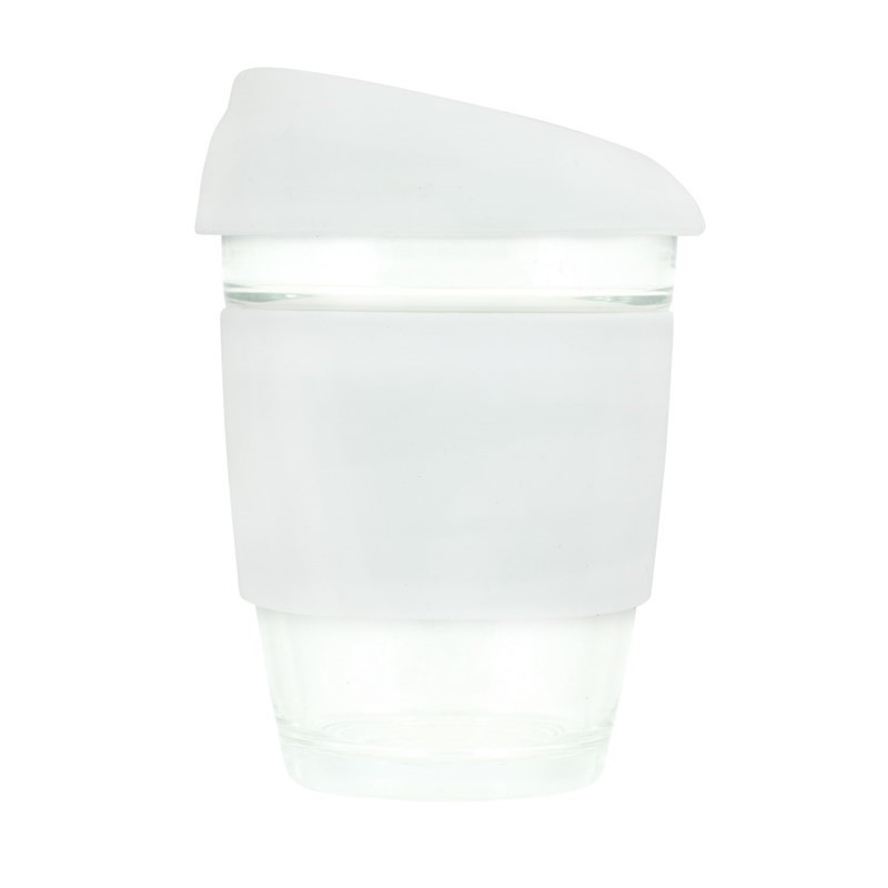 This glass reusable cup is made from high quality non-porous borosilicate glass. A very sturdy and stylish solution to enjoying your everyday cuppa. 340ml (12 oz) with various coloured bands and lids mix and match options. Packed in a natural box with window insert. Ideal to pack in our eco friendly cylinder box to complete the gift. P100N. Purchase price of the Glass Karma Kup includes 1 x band 1 x lid.