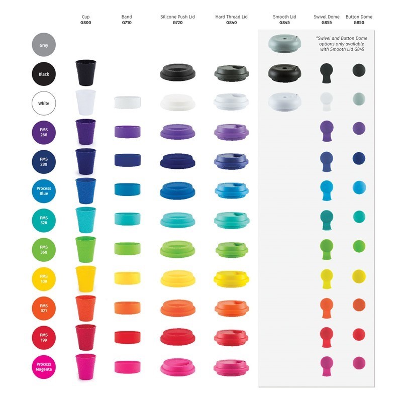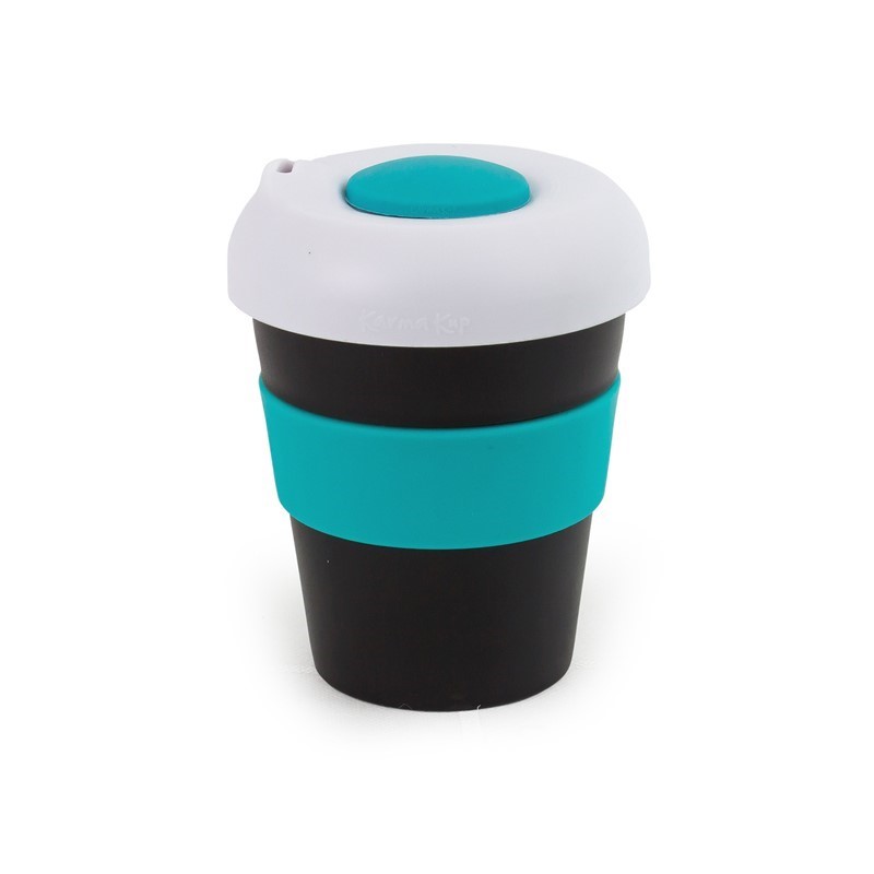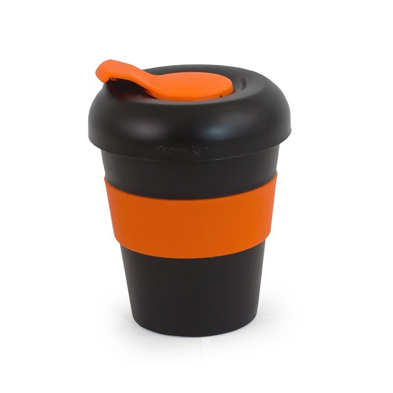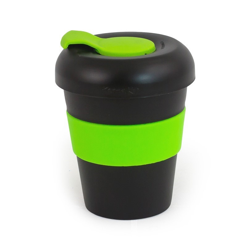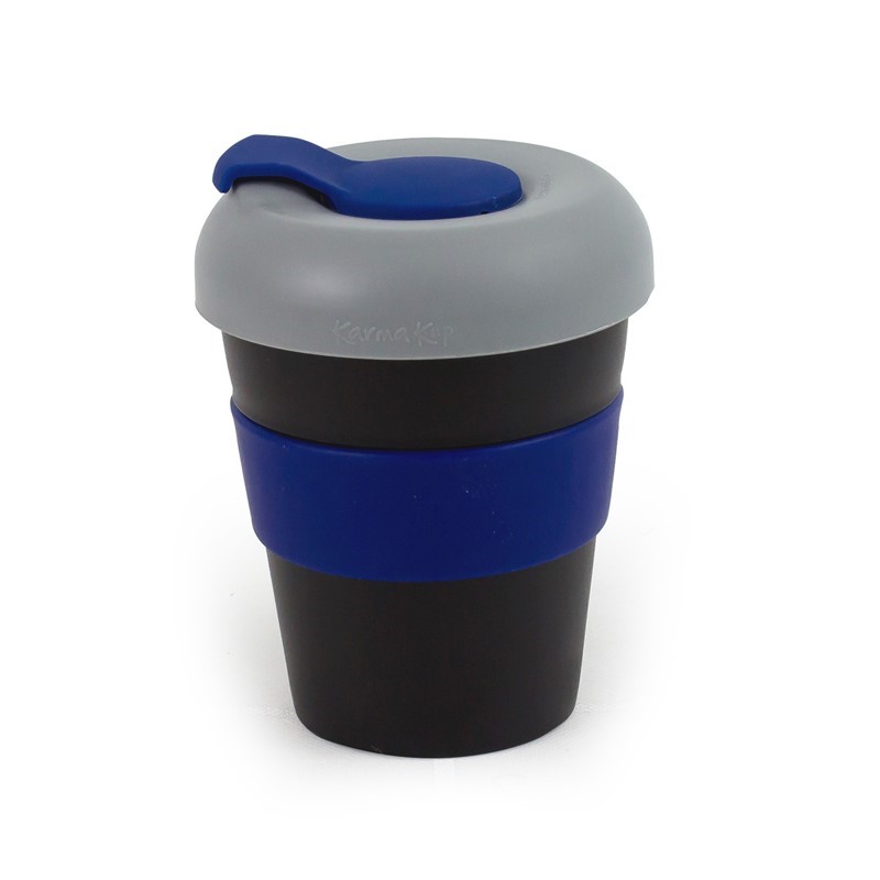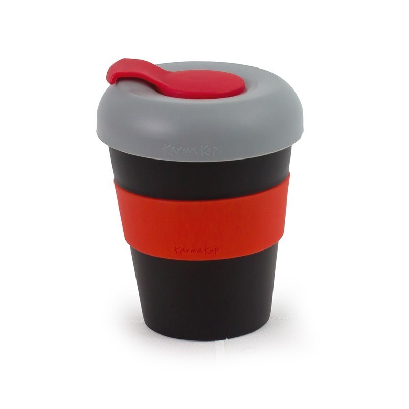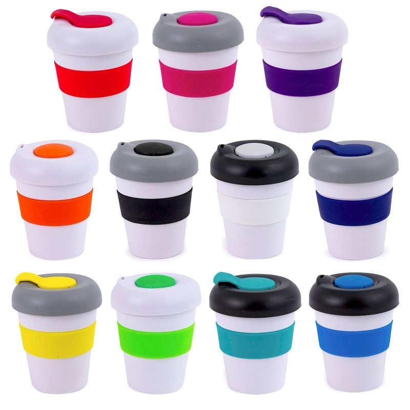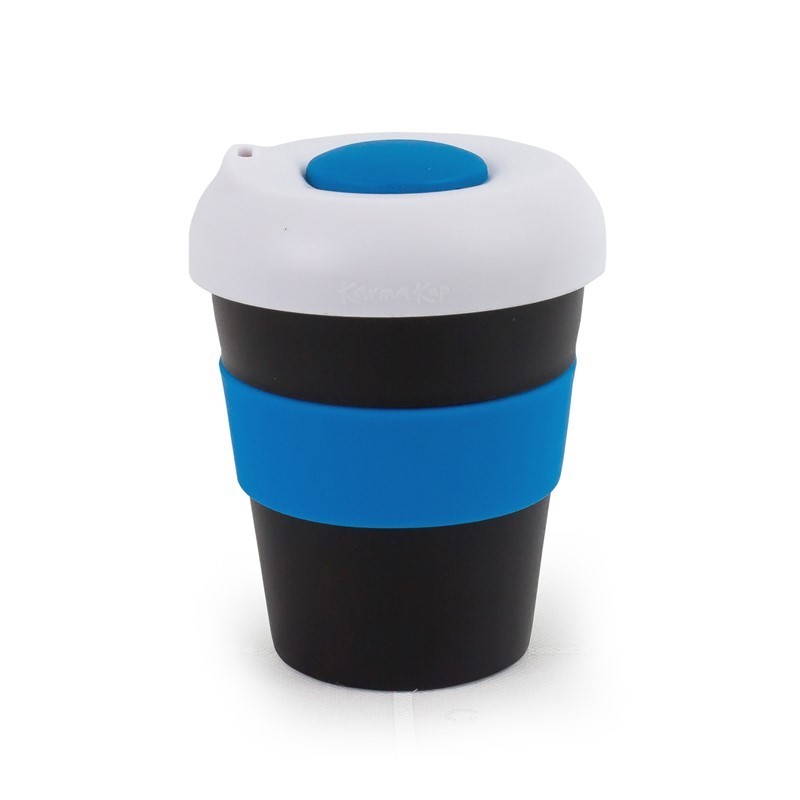 Karma Kup 11oz (320ml) Polypropylene plastic reusable takeaway cup. Mix and match silicone bands and lid to your corporate colours. reuse, recycle, non toxic, BPA free, dishwasher and microwave safe. Mix and Match lids and bands. Purchase price of the Kup includes 1 x band 1 x lid. Non Toxic. Dishwasher Safe. Lightweight, Unbreakable. Microwave proof (Kup and Silicone band). Made of BPA free Polypropylene – Polypropylene can be recycled into other consumer goods. Silicone can be recycled. Kups fit directly under most coffee machines. Secure lid means the Karma Kup meets OH&S safety standards.