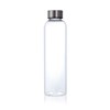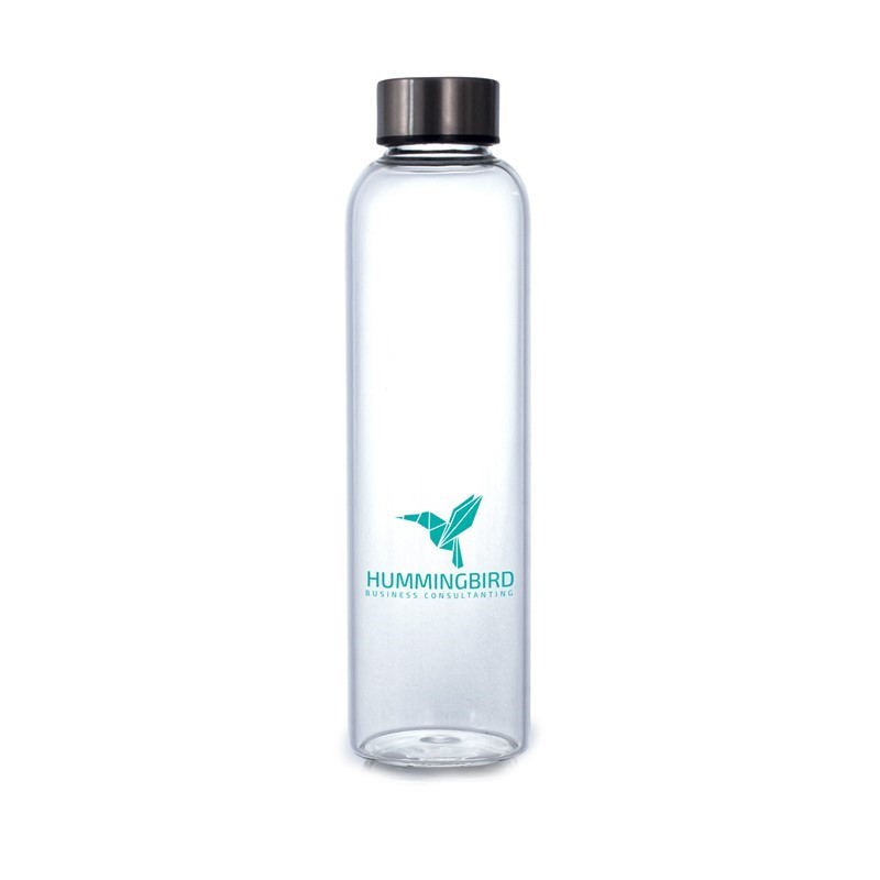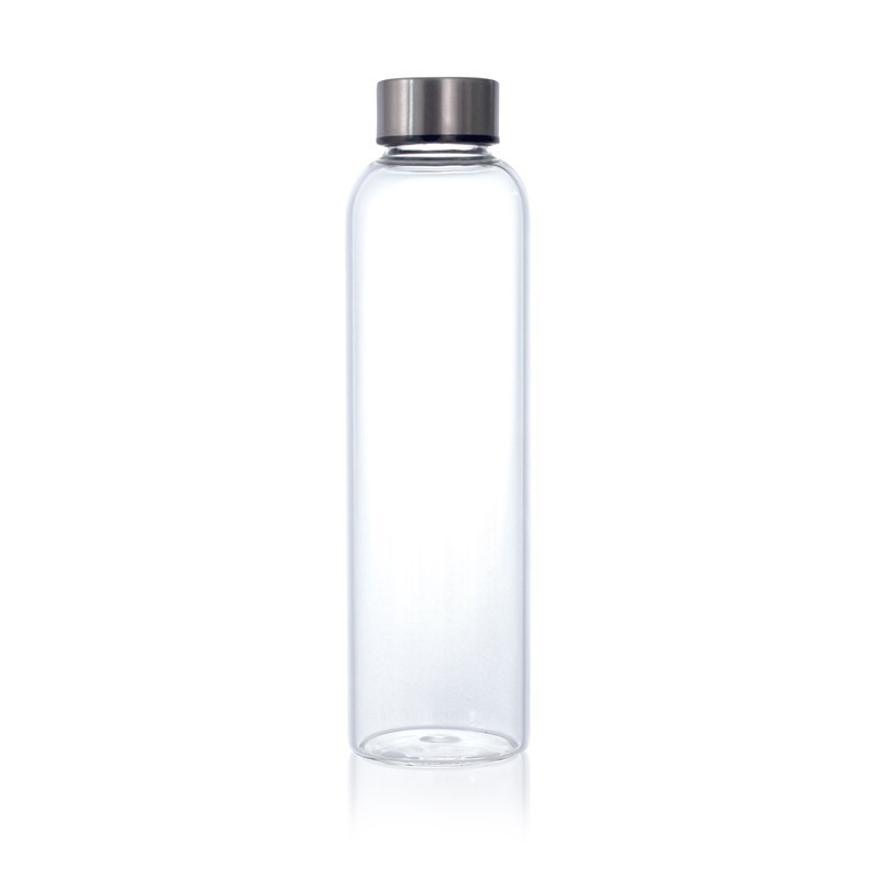 A borosilicate glass bottle . 550ml glass water bottle with stainless steel screw lid. A practical and elegantly designed glass water bottle with stainless steel screw top lid. BPA free. Dishwasher safe. Comes packed in an individual white box.