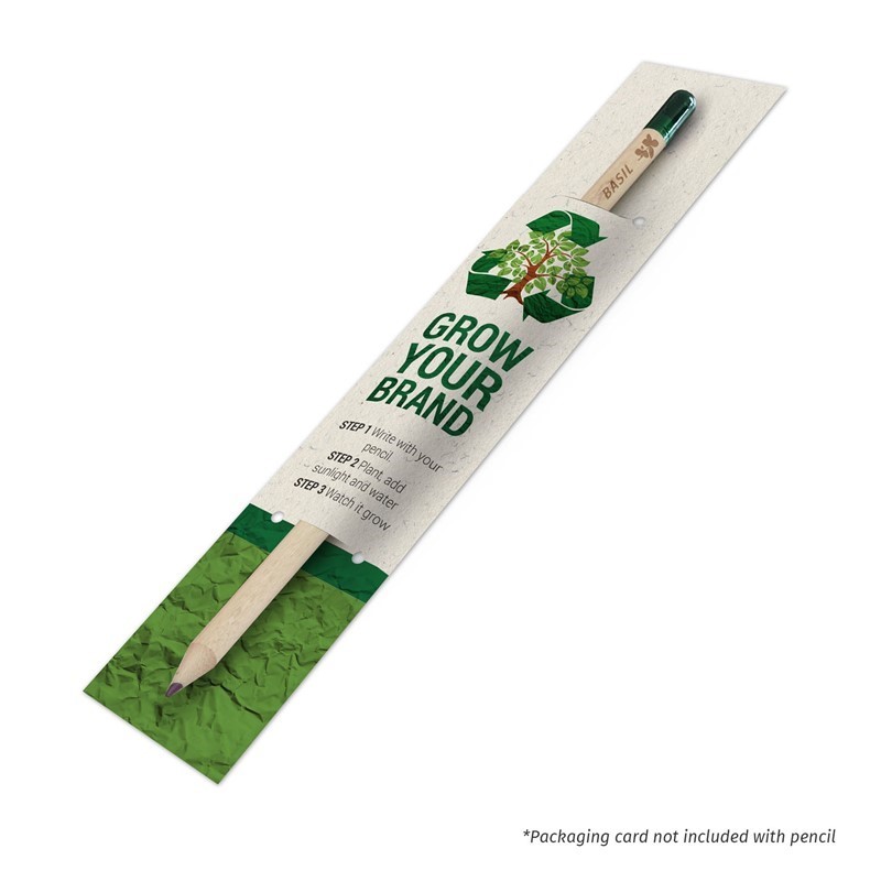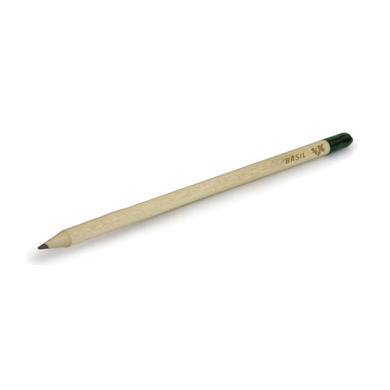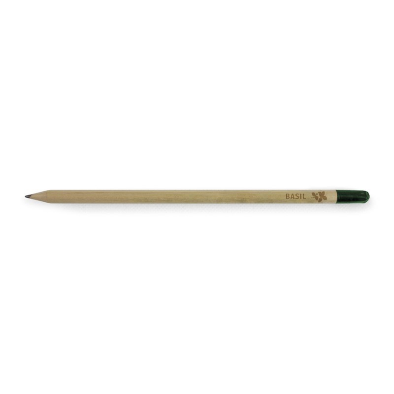 The Eco Pencil. This is so much more than a pencil, it grows into a basil plant. A sustainable, plantable pencil. The end capsule is filled with basil seeds. Use your pencil, and when you are ready plant the end into soil, add sun and water and watch it grow.