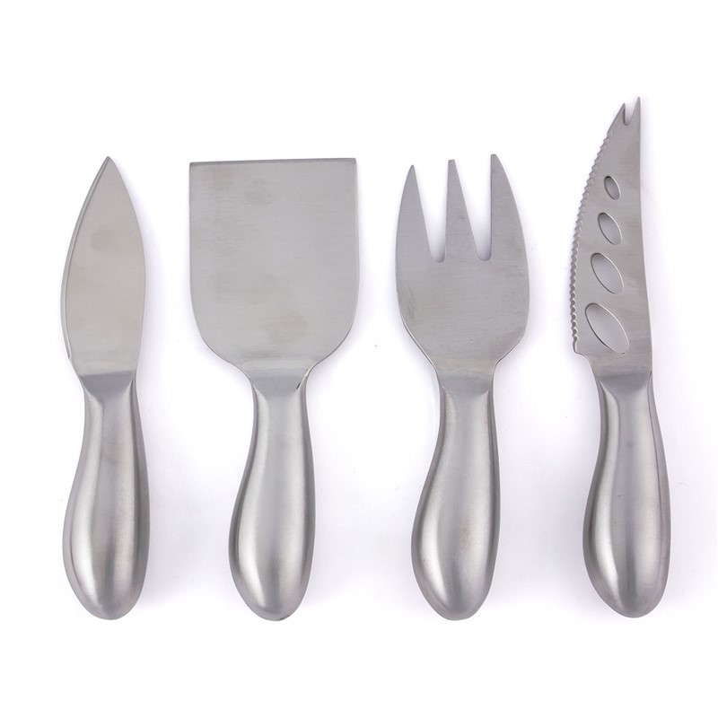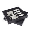 Experience cheese like never before with our Stainless Steel Cheese Knife Set! This 4-piece gourmet set includes knives for hard cheese, soft cheese, parmesan, and a fork—all crafted from durable stainless steel with a brushed finish for long-lasting use. Designed for comfortable and precise cutting, each knife features ergonomic, easy-to-grip handles. Packaged in a sleek black gift box, it's the perfect gift for cheese aficionados. Dishwasher safe for easy cleaning, each knife measures 130mm in length, ideal for handling and serving various cheeses. The accompanying box, measuring 190mm x 175mm, provides convenient storage and display.