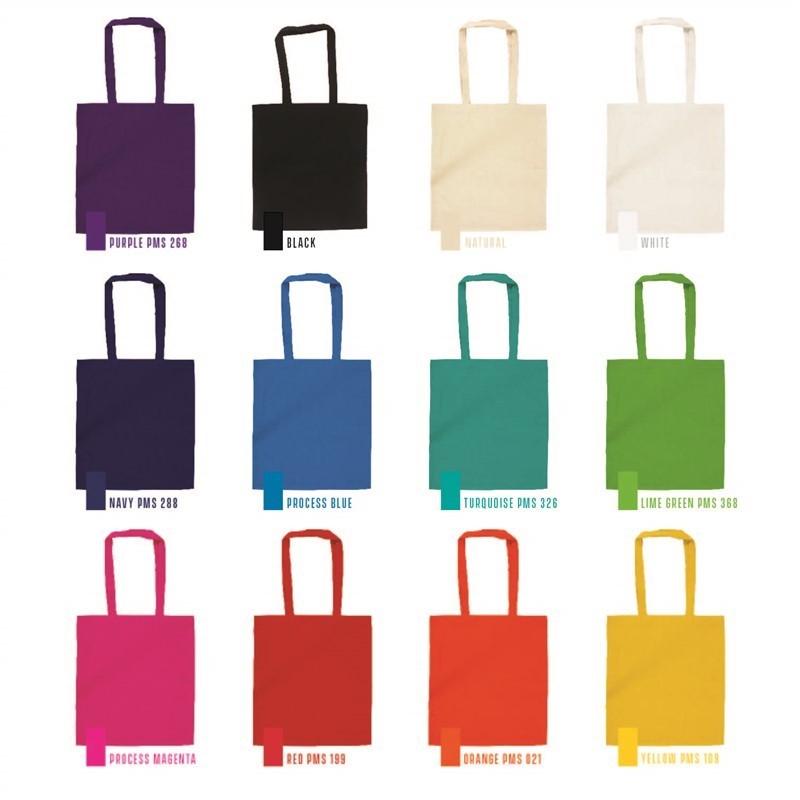 Black, White, Natural, Lime Green, Magenta, Navy Blue, Orange, Process Blue, Purple, Red, Turquoise, Yellow