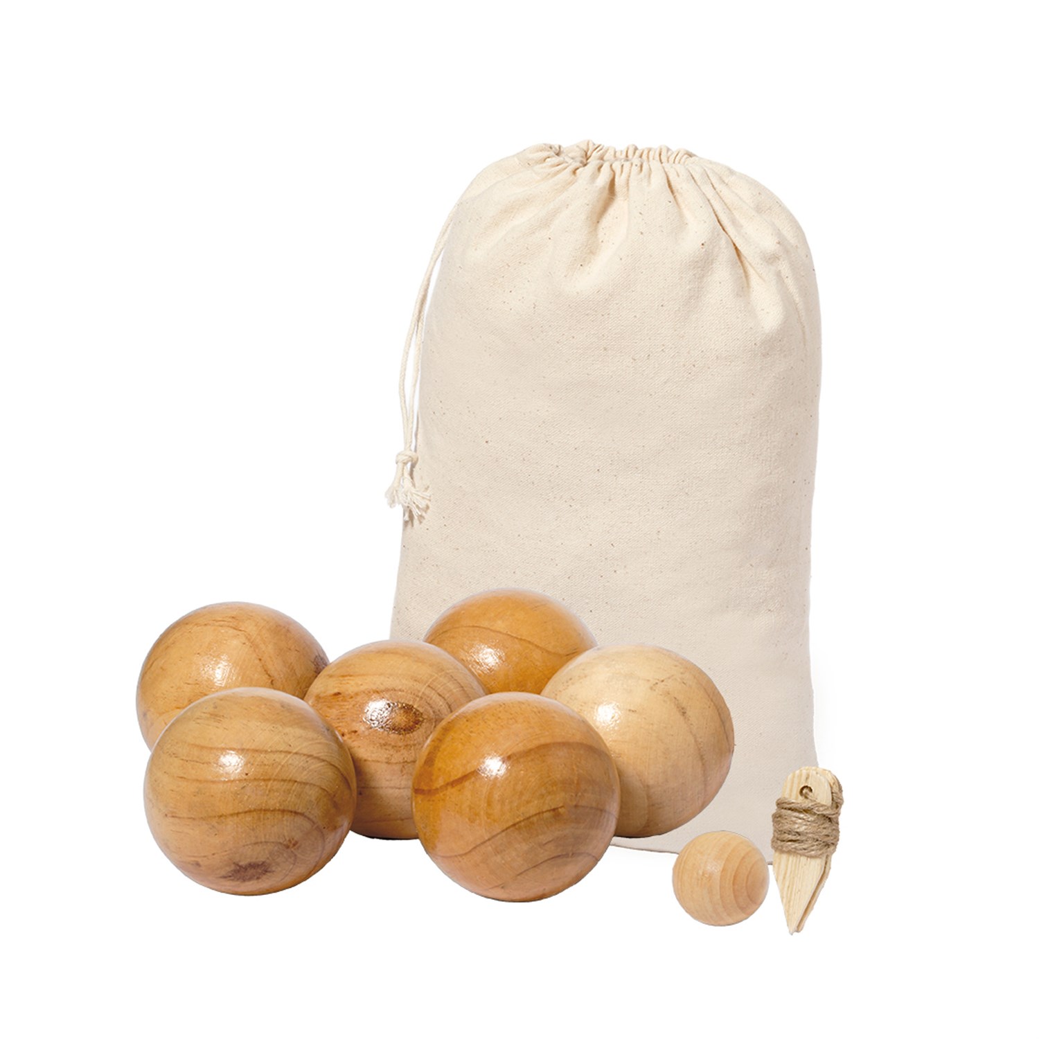 Enjoy classic outdoor fun with this handcrafted-inspired wooden pétanque set. It includes 6 wooden balls, a jack (bowling pin), and a measuring rope, providing everything needed for a traditional game experience.